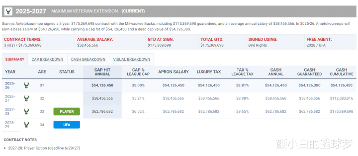 扬尼斯-阿德托昆博本赛季的薪资为5412万美元,如果出吉米-巴特勒、乔纳森-库明加还会超过这个薪资结构,所以勇士队很有可能还得吃下雄鹿队一些长约合同,比如波蒂斯三年4350万,库兹马两年4270万。