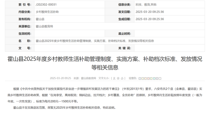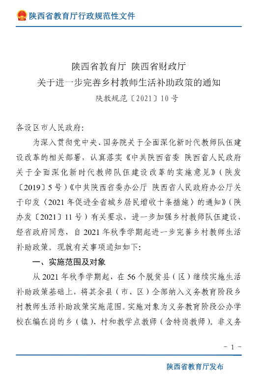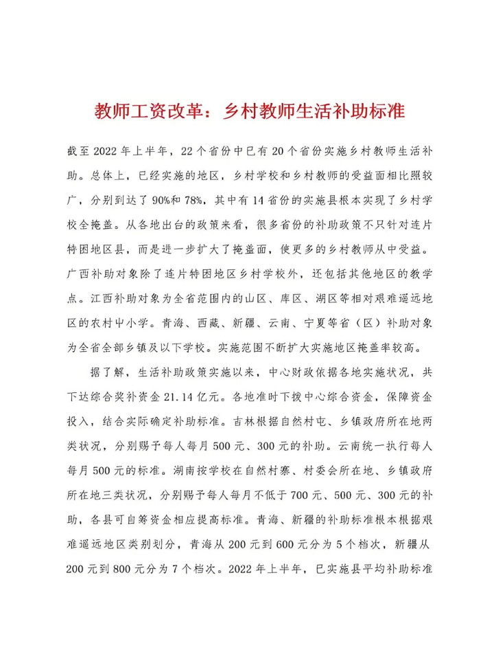 1. 乡村教师生活补助政策: